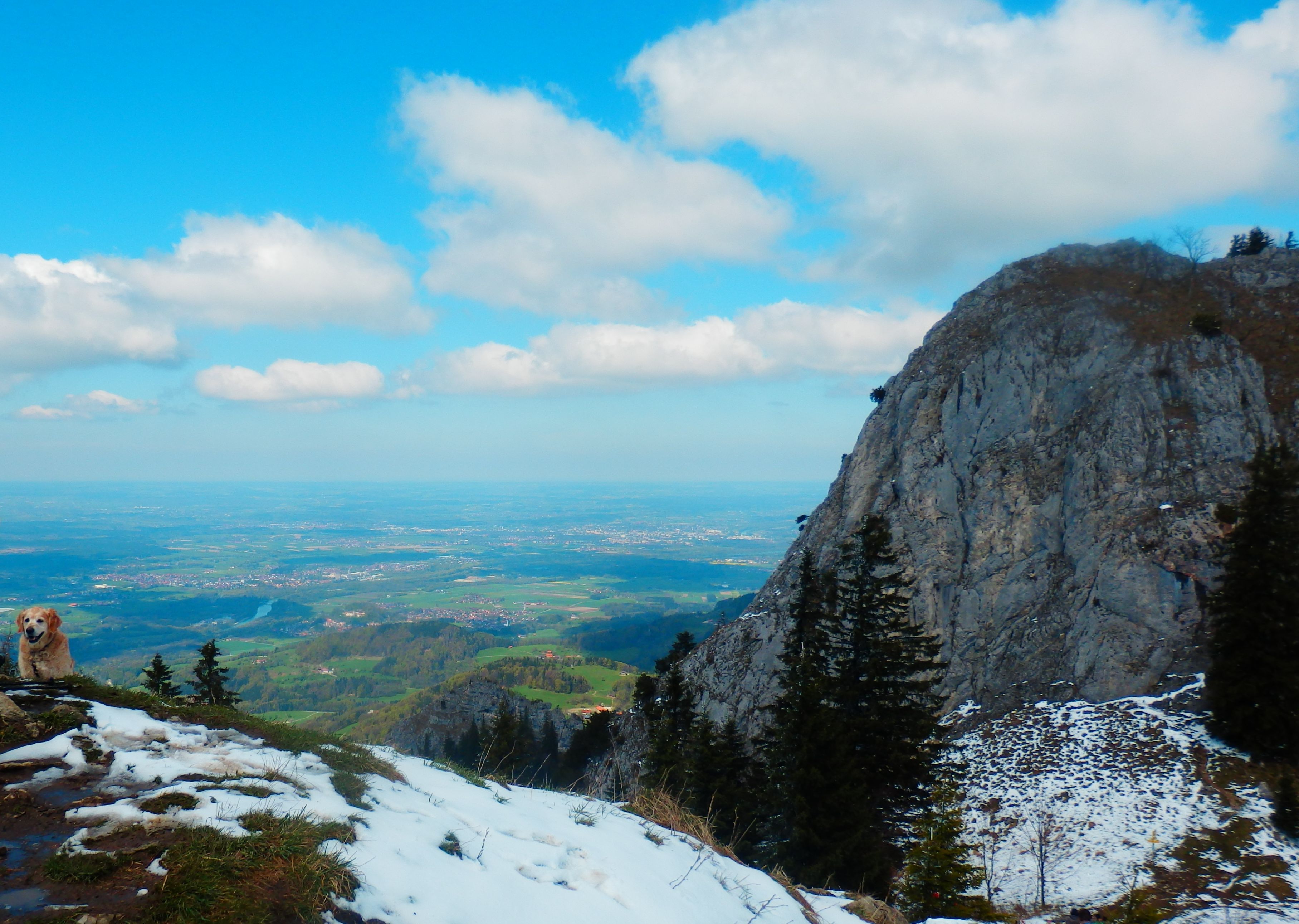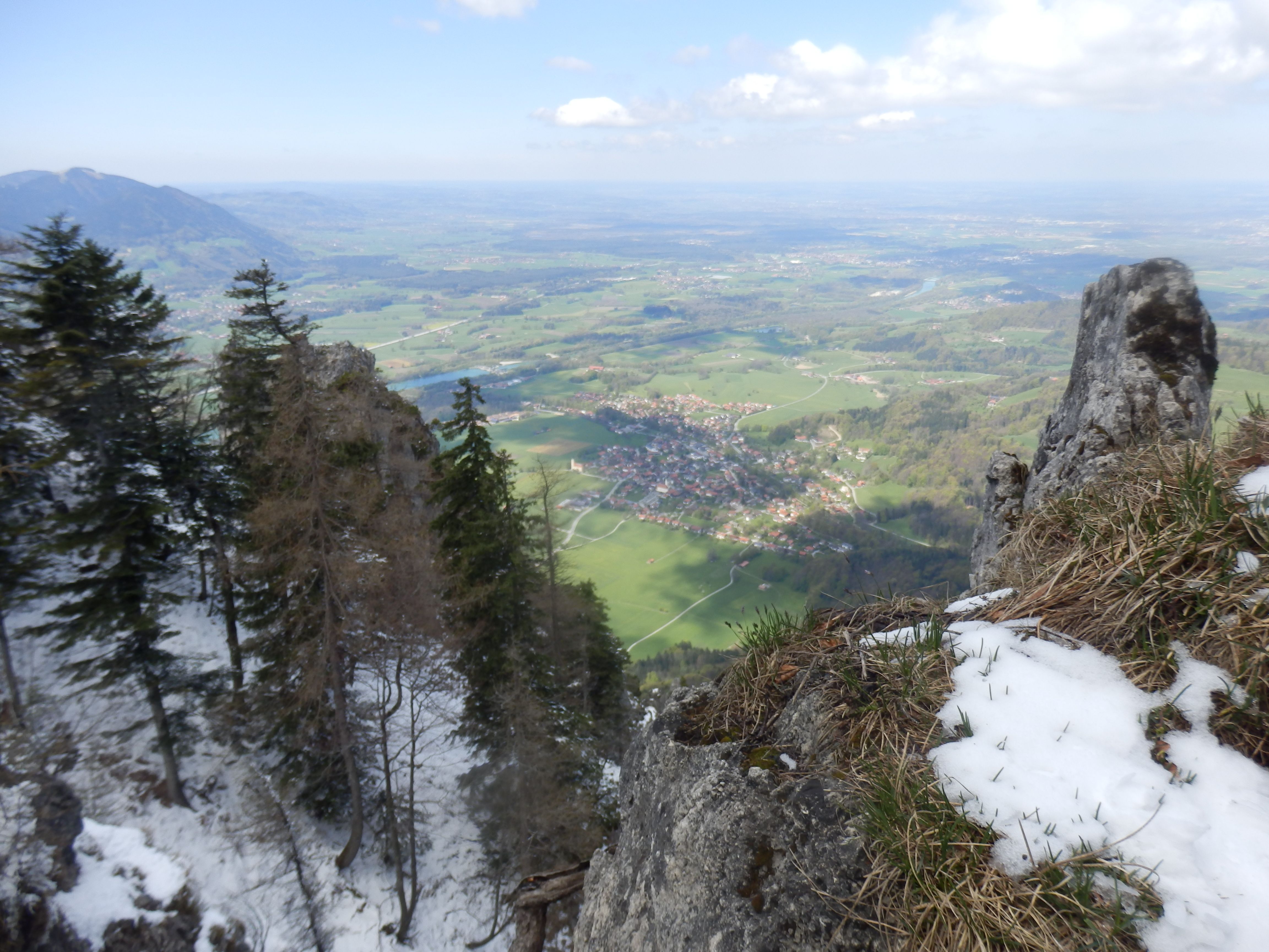 Der Abstieg erfolgt auf einem bis zu den Heubergalmwiesen oft recht batzigen Weg und dann weiter über die im Frühjahr Krokus übersäate Almwiese hinunter zu Daffnerwaldalm. Könner nehmen noch die Wasserwand mit (schwer, mit Drahtseilen gesicherter Klettersteig). Auf der Daffnerwaldalm gibt es mehrere Einkehrmöglichkeiten. Von hier empfiehlt sich der zuerst in Richtung Südosten gehende Weg, auf dem man der Markierung Duftbräu folgend gemütlich zurück ins Tal wandert. Im letzten Abschnitt geht es hier romantisch entlang des Fluderbachs mit einem kleinen Wasserfall.