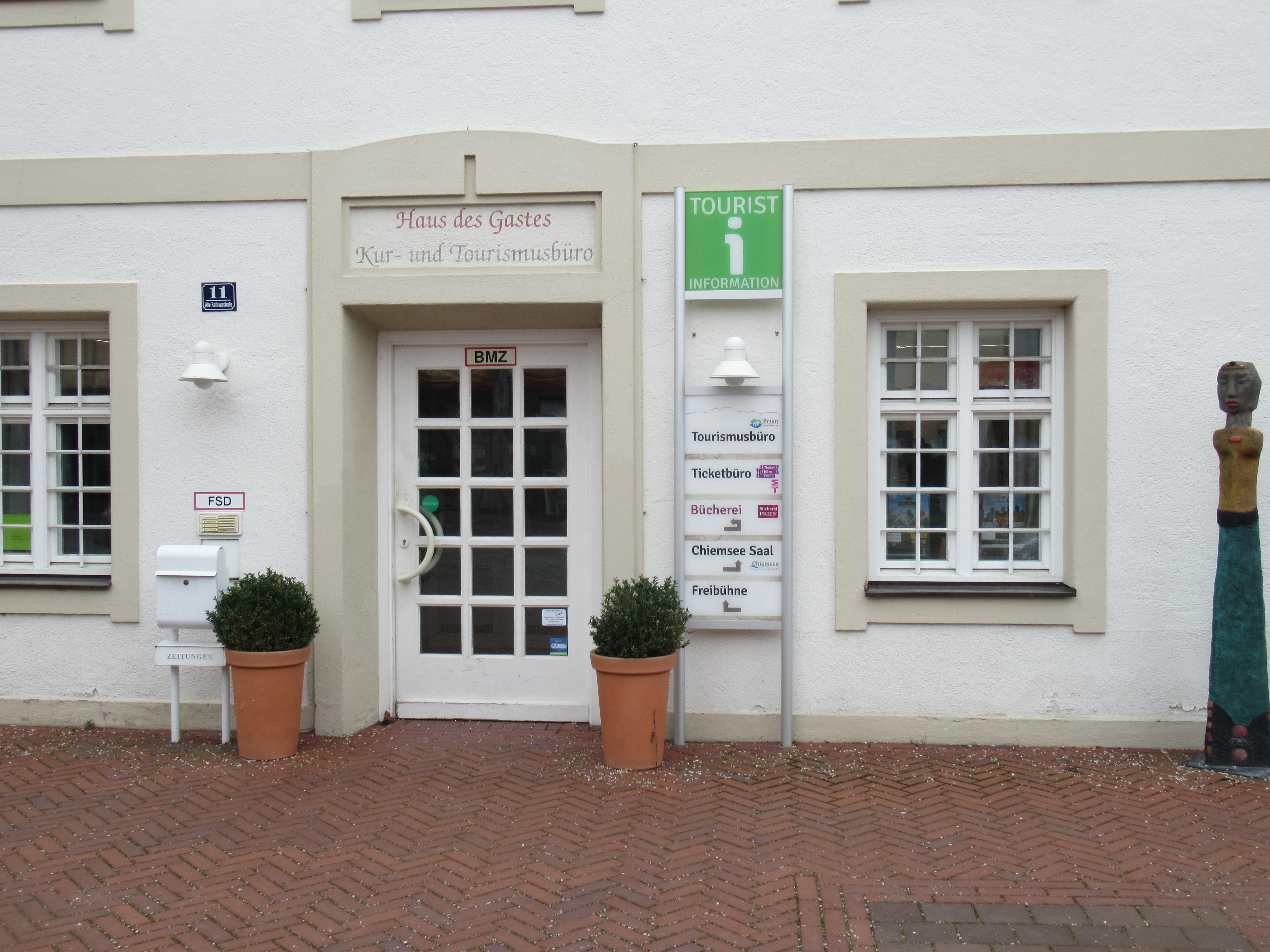 Im Priener Haus des Gastes, Alte Rathausstraße 11, 83209 Prien, befindet sich die Tourist-Info und die Bücherei Prien. Hinter dem Haus des Gastes ist der Chiemsee Saal in dem u.a. Konzerte, Ausstellungen und Festakte veranstaltet werden.