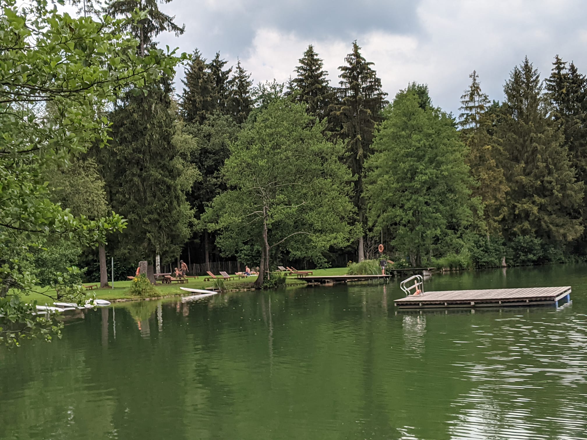 Ein breiter und flacher Weg führt nah am Ufer entlang rund um den See.