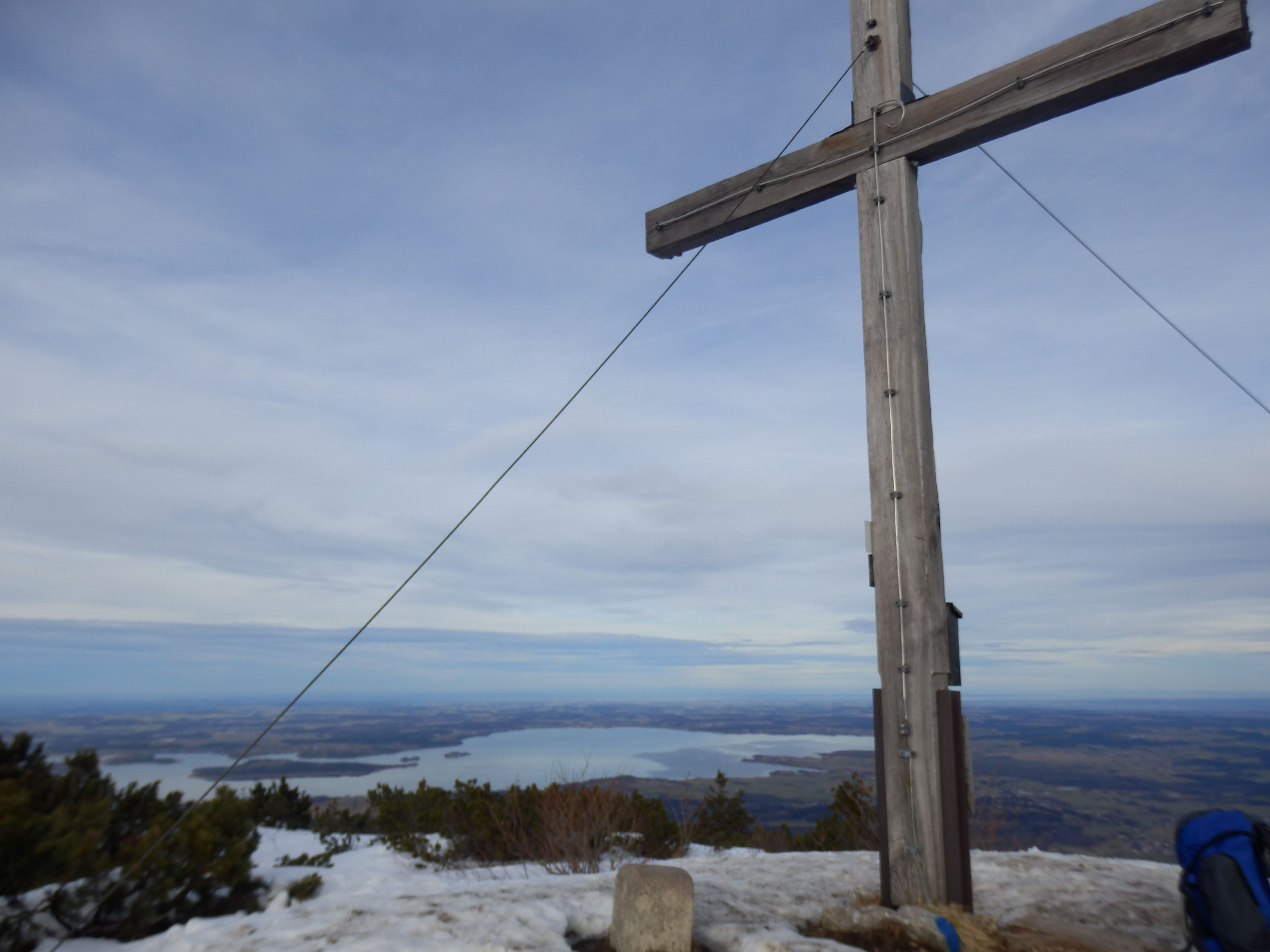 Hochplatte-Gipfelkreuz mit Chiemsee im Hintergrund