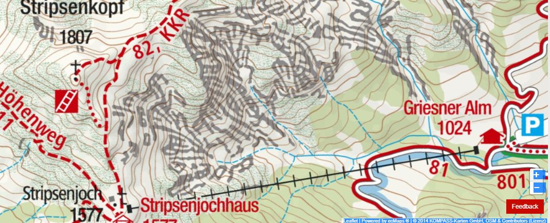 Die mit einer Mautstraße durch das Kaiserbachtal erreichbare Griesneralm mit ihrer hochalpinen Szenerie ist Ausgangspunkt für schöne Bergwanderungen und Klettersteige im Wilden Kaiser. Zum herrlich gelegenen und bei Bergsteigern und Kletterern als idealer Ausgangspunkt für anspruchsvolle Bergtouren und Klettersteige sehr beliebten Stripsenjochhaus am Stripsenjoch kommt man von hier auf gutem Weg in 1 1/2 Std.