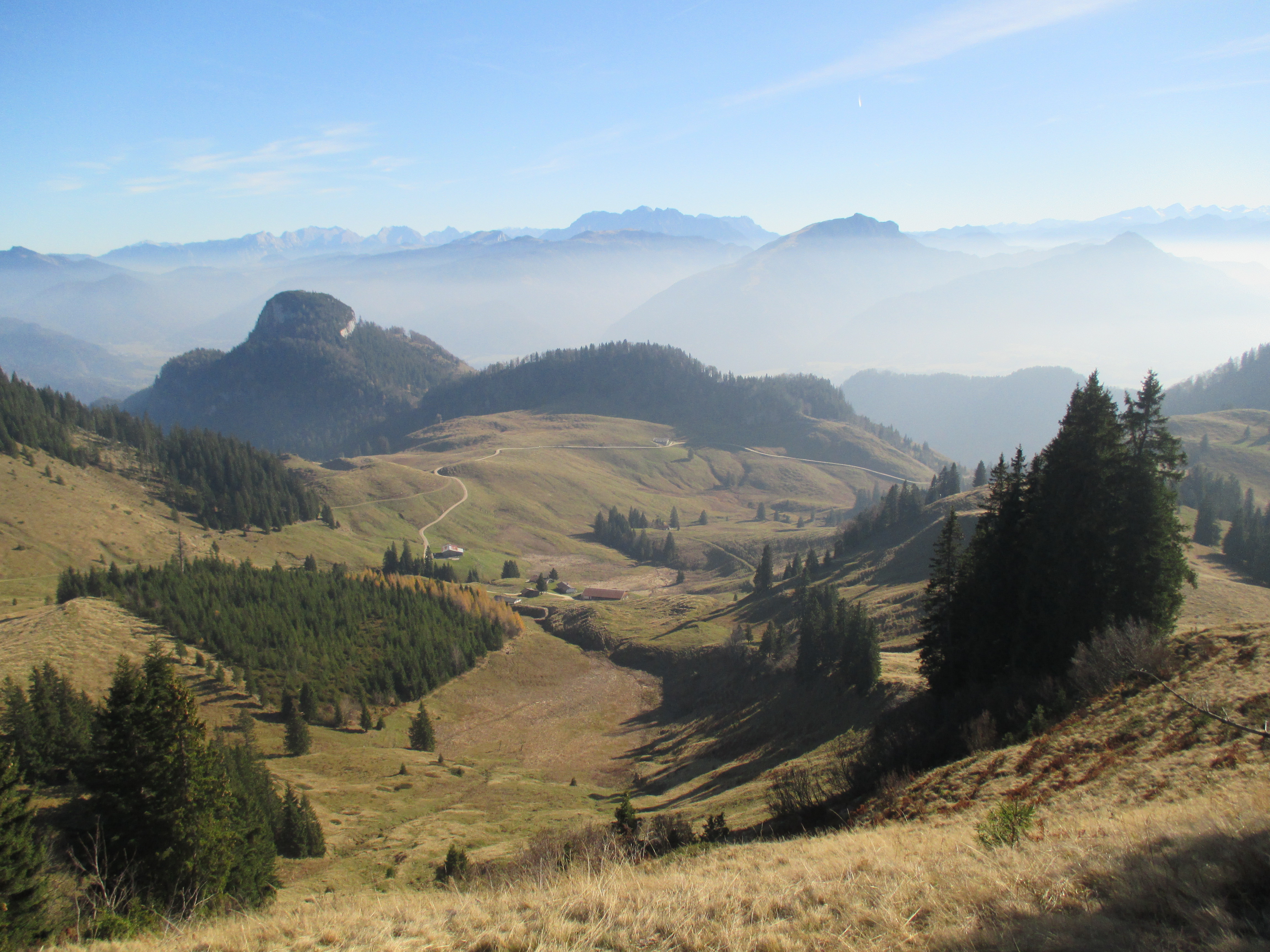 Bei der bewirtschafteten Naringalm (1136 m) kann man sehr schön auf der Terrasse die schöne Aussicht genießen, bevor man dem Wegweiser nach „Kössen über die Hinhagalm“ folgend zum Ausgangspunkt nach Staffen hinabwandert.
