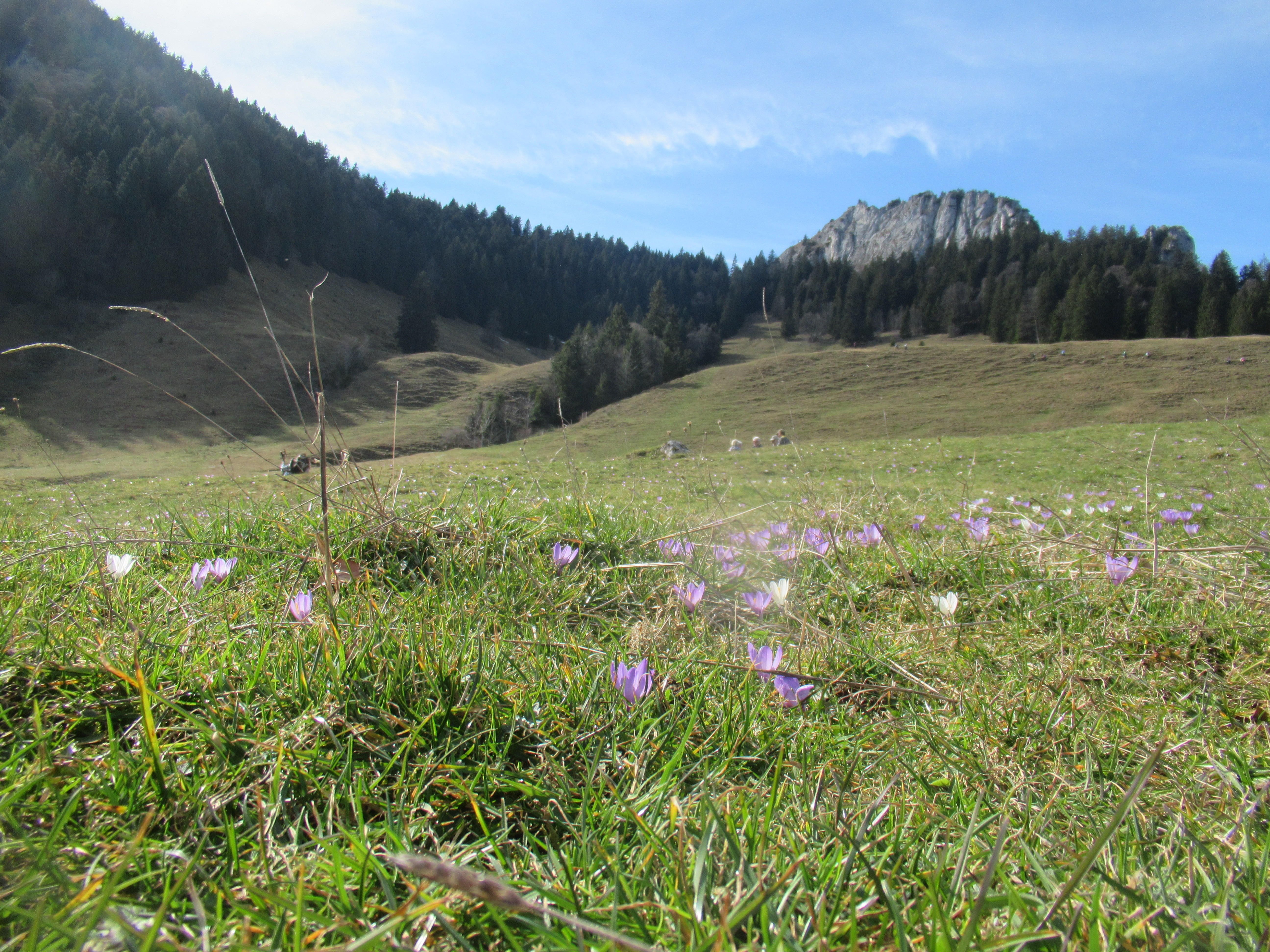 Zur Krokusblüte von Gritschen auf die Daffnerwaldalm