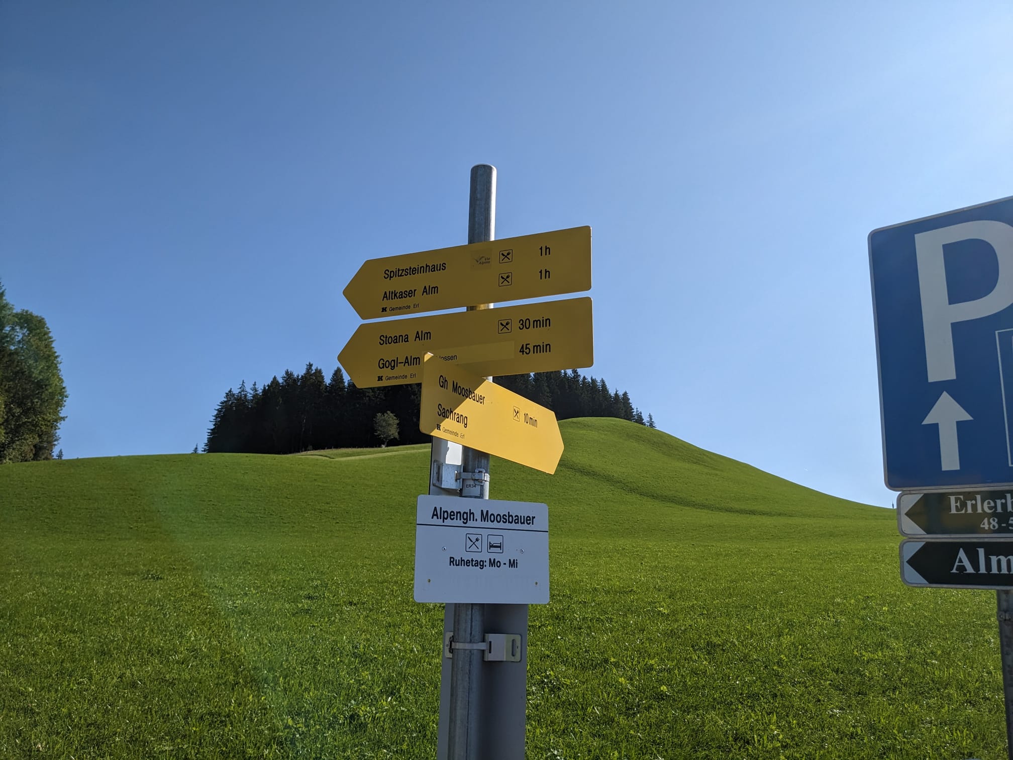 Der Parkplatz Erler Berg oberhalb von Erl in Tirol ist Ausgangspunkt für eine Bergtour auf den Spitzstein oder für schöne Almenwanderungen, z.B. zur Goglalm, Stoanaalm oder Altkaseralm.