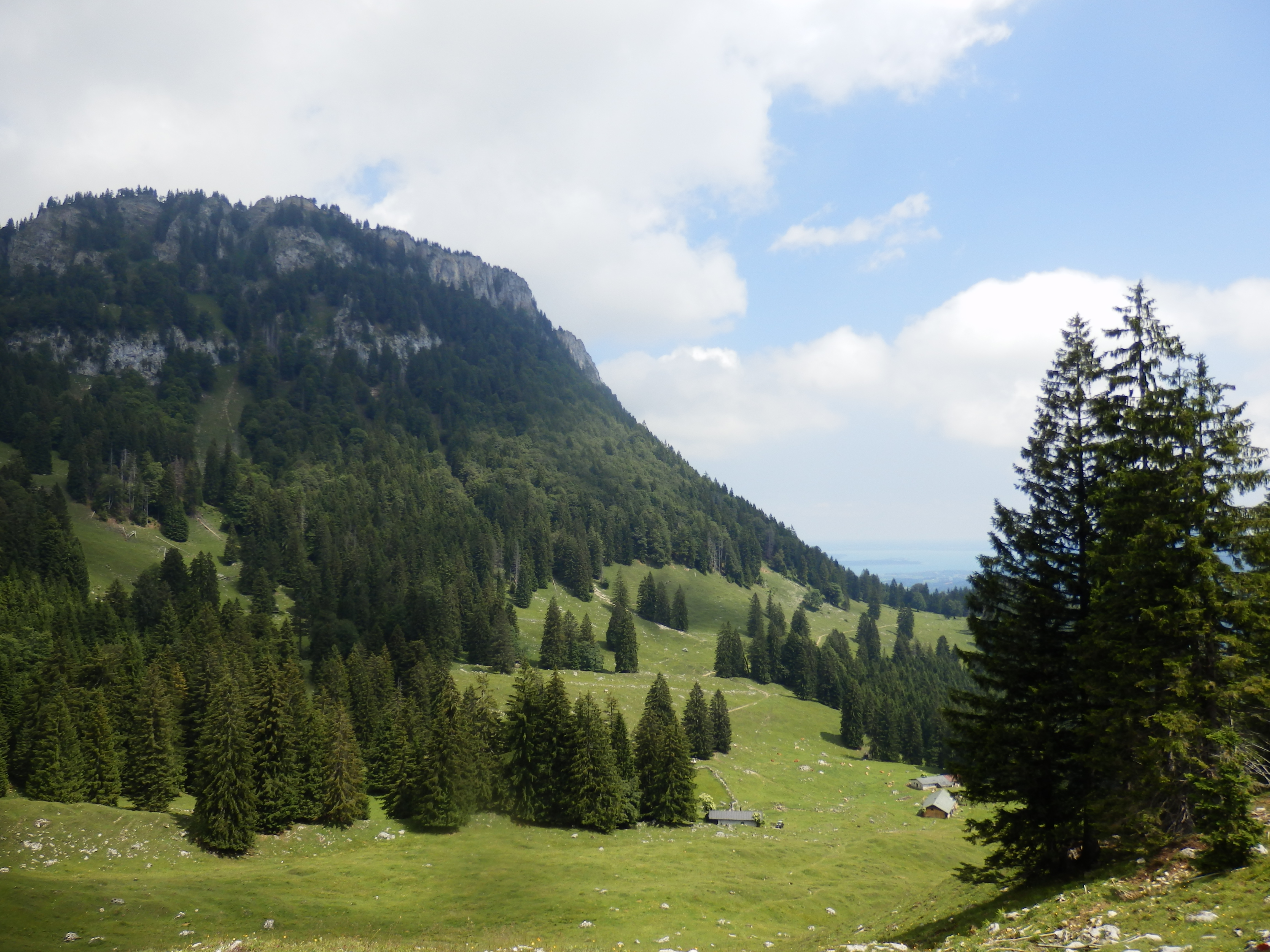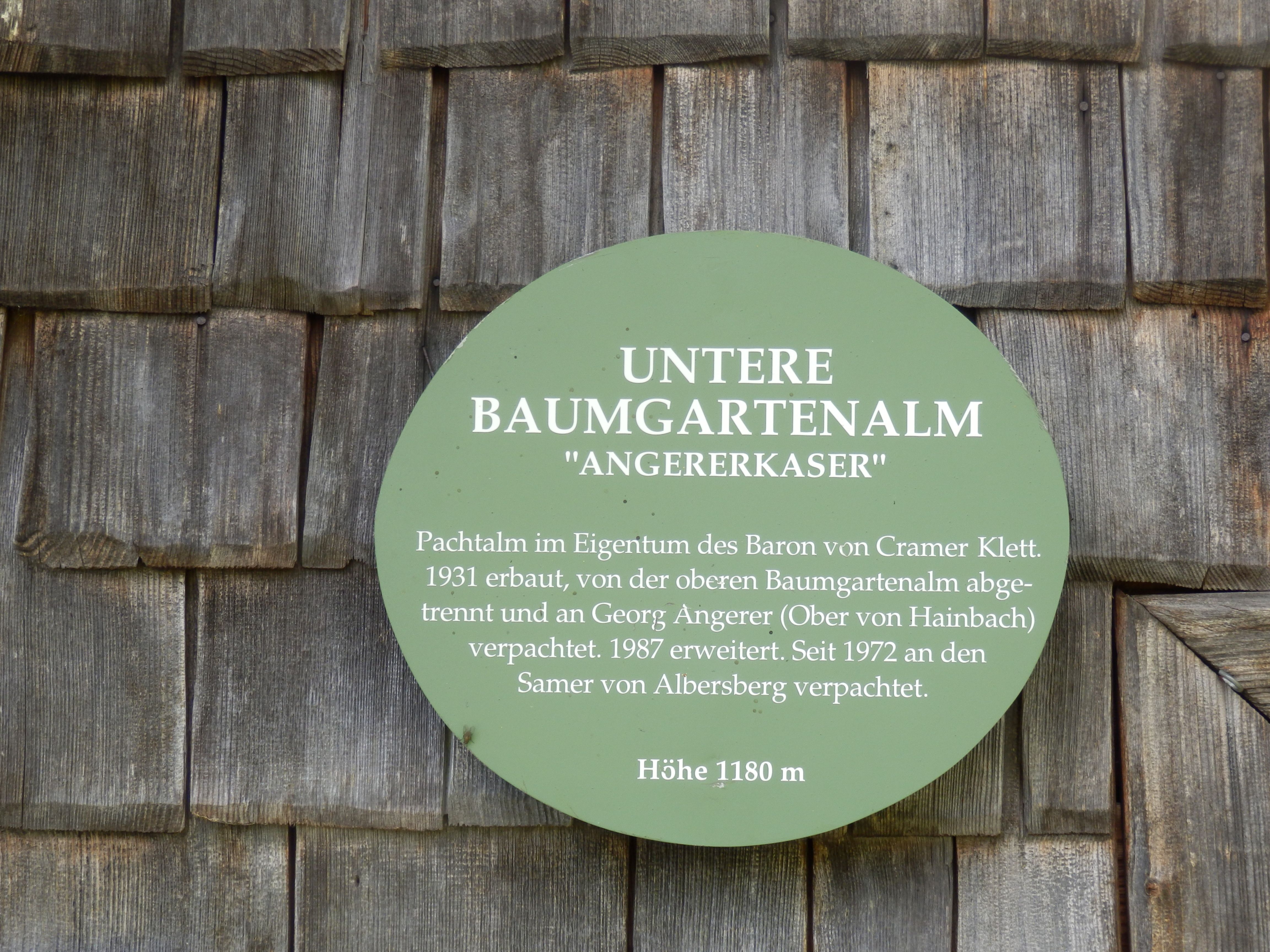 Vom Laubenstein gehts dann frei über die Wiese hinunter bis man auf einen schmalen Pfad trifft. Dieser geht in einen alten Jagasteig über. Vorbei an der Hammerbachquelle und nach der Durchquerung eines kurzen Waldstückes erreicht man eine Forststrasse und ist dann bald bei der Hofalm, die eine Einkehrmöglichkeit bietet. Man kann auch kurz davor einen Abstecher zur Frasdorferhütte machen, wo es eine richtige Speisekarte gibt.