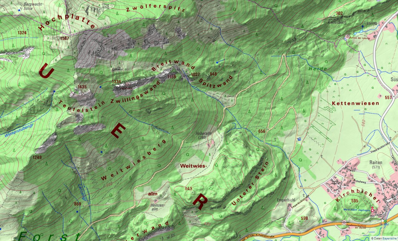 Die Zwillingswand ist eine markante Felsformation unterhalb der Hochplatte zwischen Marquartstein und Schleching.