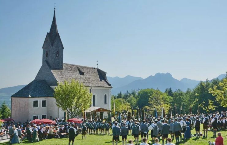 Im Jahre 1687 wurde dann eine Holzkapelle errichtet, 1716 eine kleine Kirche aus Stein und seit 1767 gibt es eine spätbarocke Kirche mit einem Rokoko-Altar von Joseph Götsch mit dem Maria-Hilf-Bild sowie Fresken im Chor und Langhaus von Sebastian Rechenauer dem Älteren.