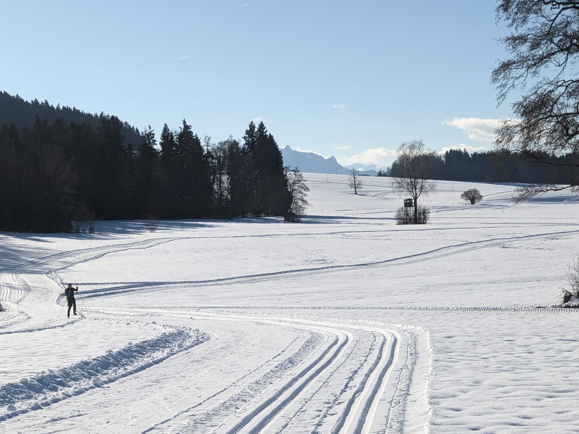 Eine schöne, durchwegs durch offenes Gelände und vorbei an kleinen Weilern führende Loipe gibt es unweit von Prien. Der Start der Loipe ist am Wanderparkplatz in Atzing.