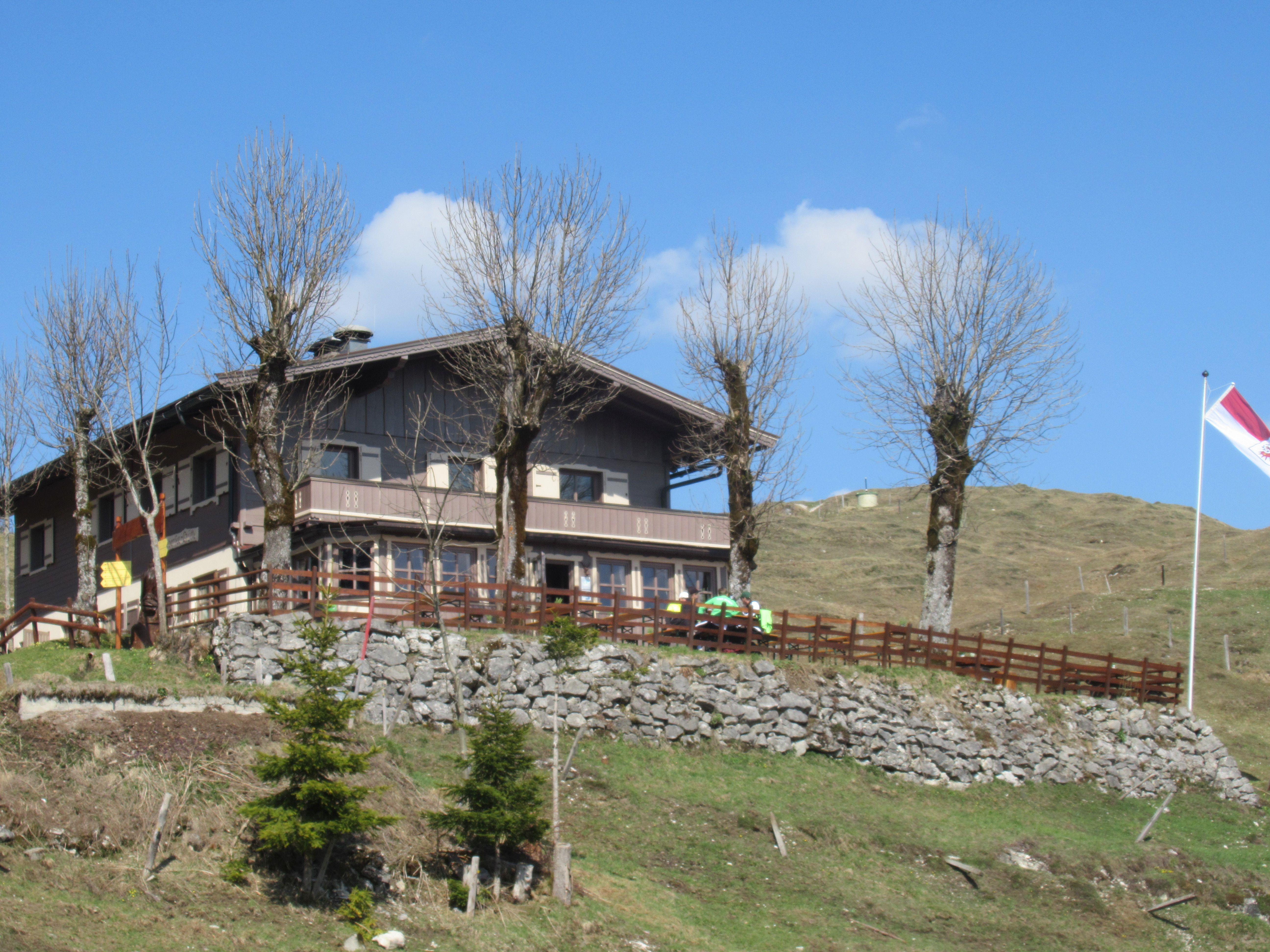 Die Taubenseehütte oberhalb von Kössen in Tirol liegt unterhalb der Rauhen Nadel, einem kleineren Gebirgszug (höchste Erhebung: Rauhe Nadel-Kopf 1266 m) zwischen dem Tiroler Kaisergebirge und den Chiemgauer Alpen. Von der Hütte geht man in 20 Min. zum idyllisch gelegenen Taubensee.